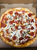Pepperoni, eggplant, roasted peppers, broccoli, mozzarella & Romano cheese.