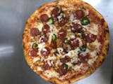 Baked ham & sliced pineapple, mozzarella & Romano cheese with our blend of tomato sauce.